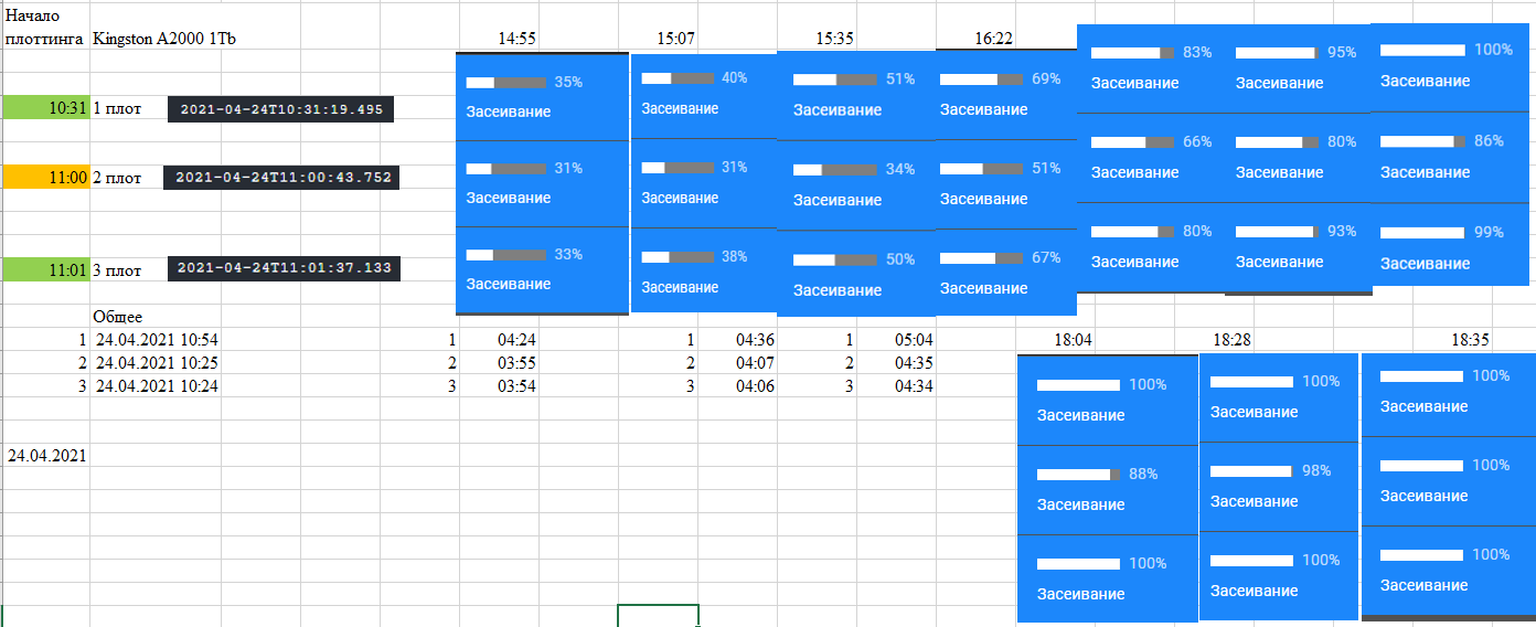 Первая фаза — арифметическая. Формирование контрольных таблиц. Она занимает, ориентировочно, 40% времени всего плоттинга. В этой фазе в основном используется процессор, а SSD используется не очень сильно.