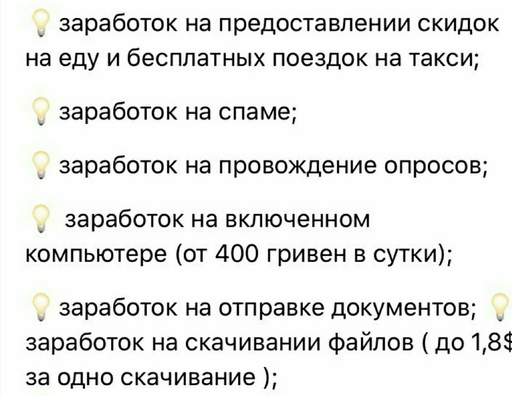 Пацаны и пацанессы, хватит копошиться здесь в поисках копеек, сам знаю о чем говорю, еще в феврале я искал любую возможность заработать, шерстил фл и площадки объвлений. Но теперь мучения кончились, вот ресурс http://gmdvg.com/7C6 - мой путь к нормальной жизни, сейчас у нас всех куча свободного времени, изучите тему и вперед, не ссыте!