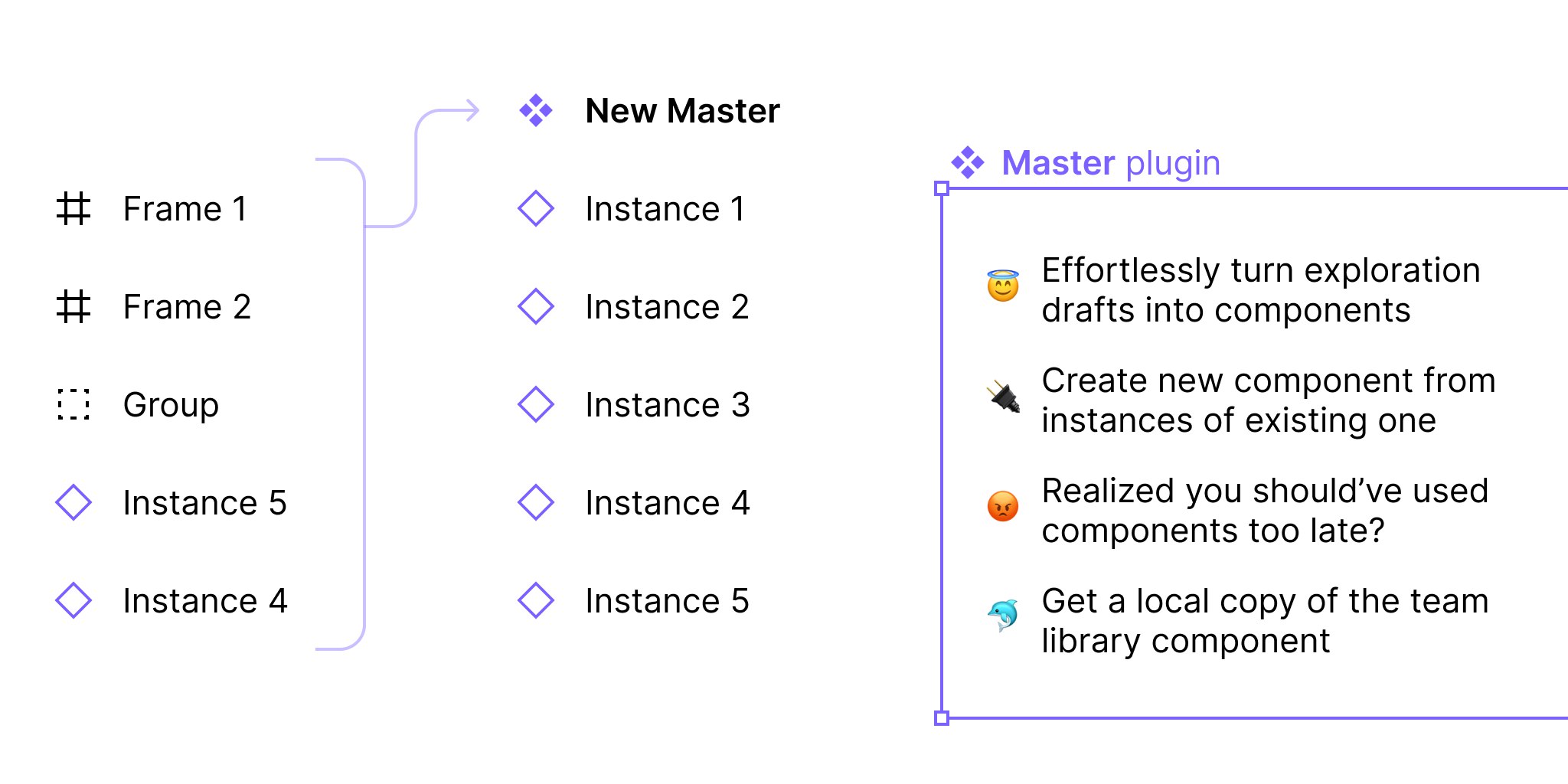 Master — плагин  для создания и управления компонентами. Превратите все выбранные объекты в экземпляры одного компонента.