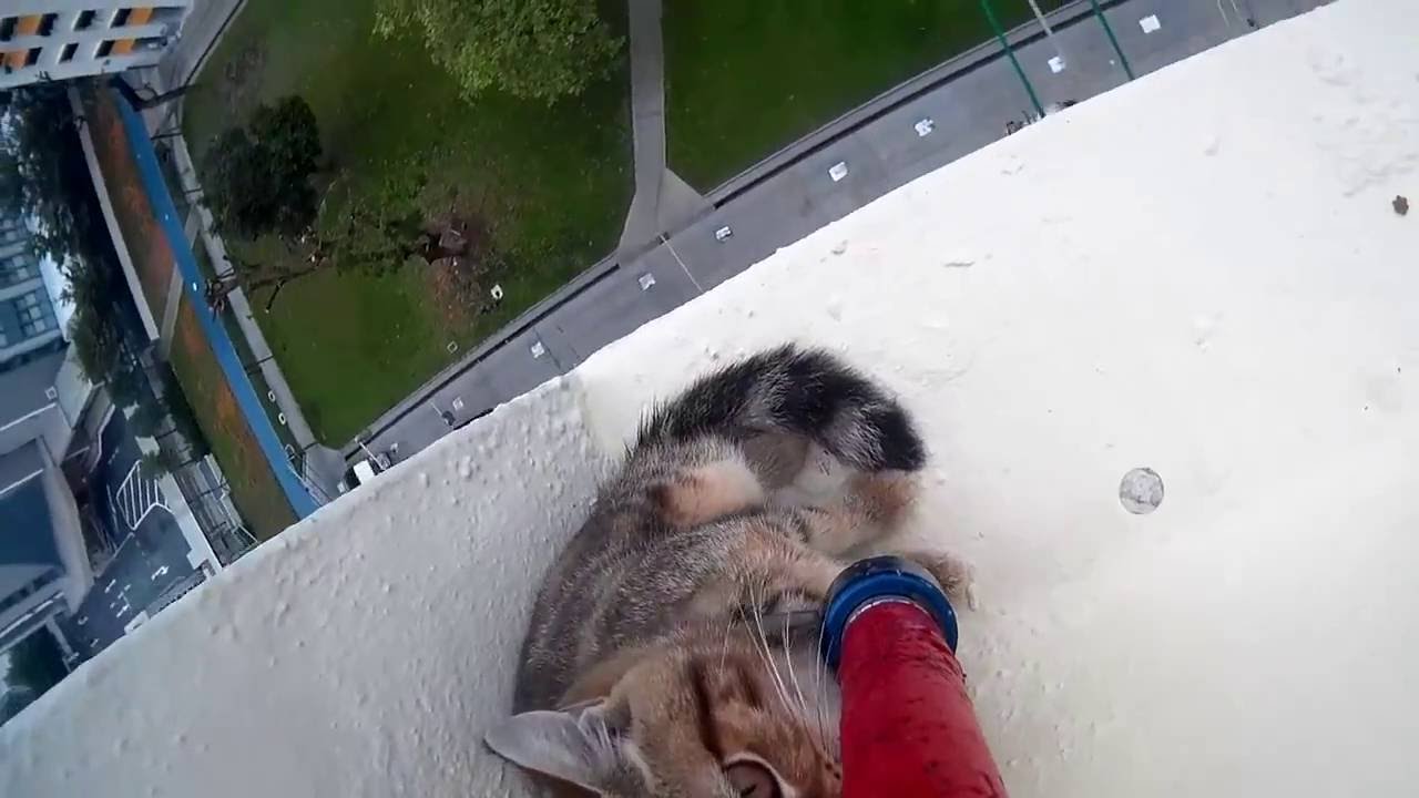 В Сингапуре тоже спасают котиков. Вытащили с карниза.