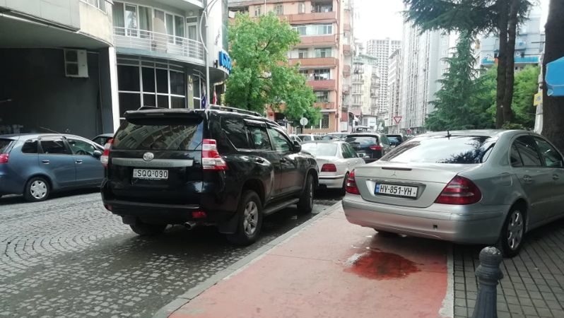 К слову, в прошлом году были подняты штрафы за парковку на тротуаре и штраф составляет 50 лари вместо 10. Однако, какой смысл в штрафах, если нарушителей никто не штрафует? Тем временем автомобили на тротуарах не только мешают движению пешеходов, особенно маломобильных групп (инвалиды, люди с колясками, старики итд), но и разрушают новую плитку по всему городу.