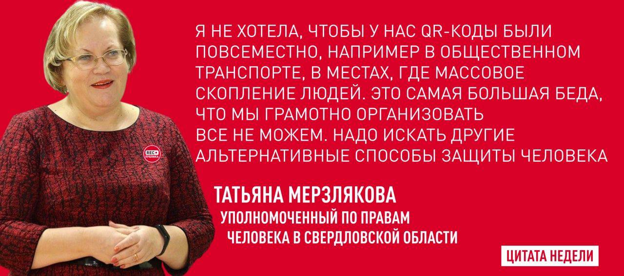 🔴 В рубрике "Цитата недели" уполномоченный по правам человека в Свердловской области, член СПЧ Татьяна Мерзлякова и её мнение о QR-кодах.