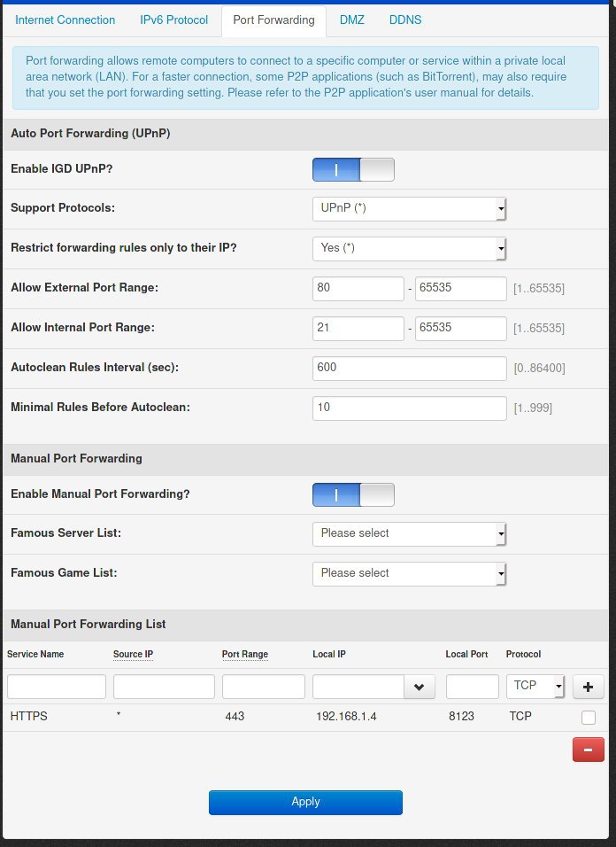 Сменил прошивку на рутере и сломался port forwarding.