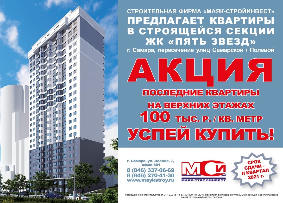 Дарим метры при покупке трехкомнатной квартиры площадью от 91 до 117 м 2! Акция распространяется на квартиры, расположенные по адресу: г. Самара, Куйбышевский внутригородской район, жилой район «Волгарь», 9 квартал, микрорайон 3 и 12 квартал, микрорайон 4.