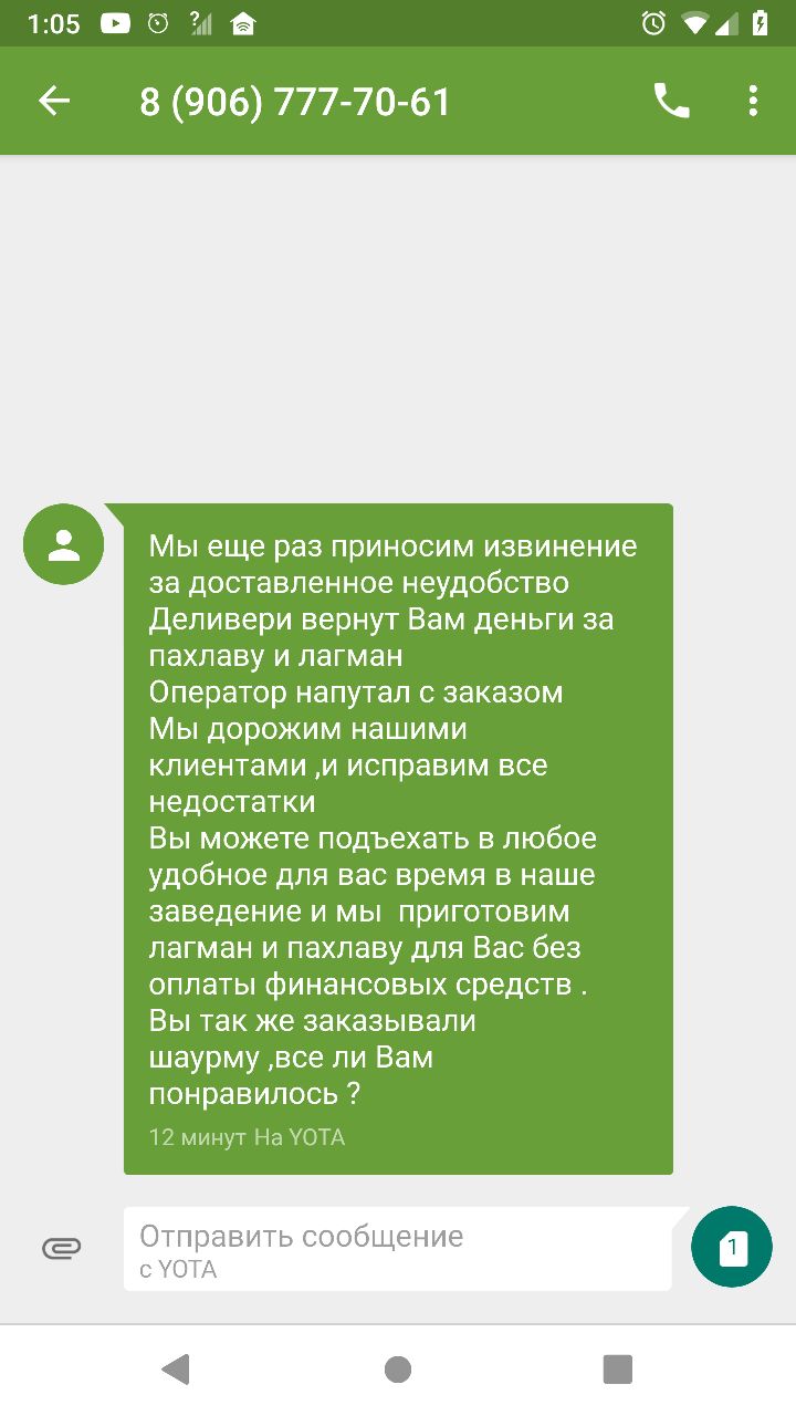 Заказал сегодня из нового ресторана шавуху, лагман и пахлаву. С заказом нахуевертили, ланман мегахуевый, а пахлаву вообще не положили. Пишу в поддержку, мол че за нахуй, пусть деньги вернут. В итоге сейчас звонит ахмед какой-то и начинает меня убеждать, что лагман у них заебись, а ты побойся аллаха, такое наговаривать на его кулинарный талант