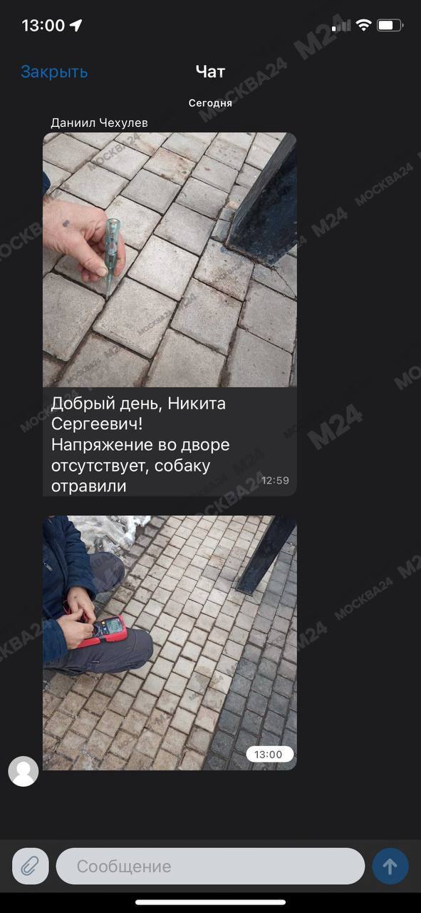 Щенок добермана погиб от удара током на территории ЖК «Водный», об этом Москве 24 рассказал местный житель.