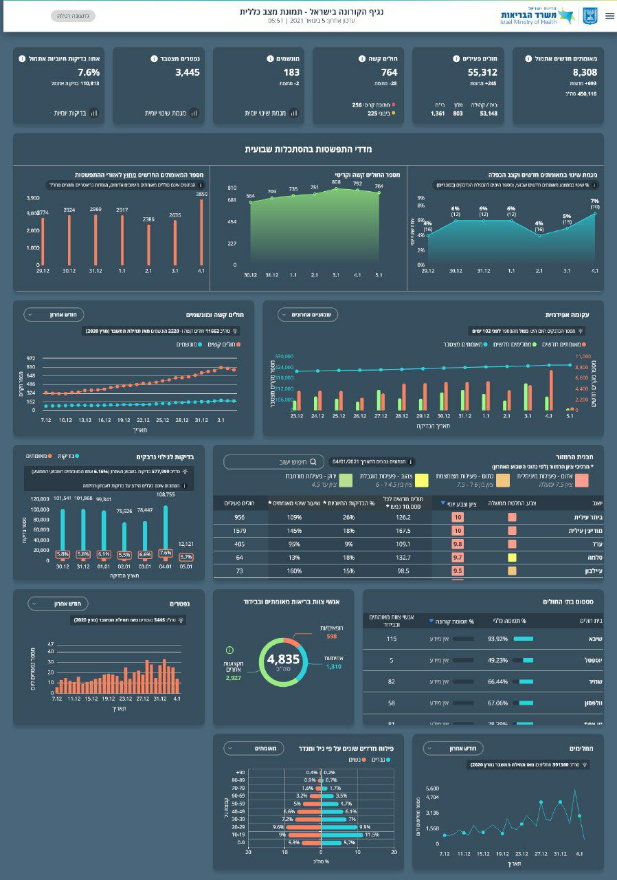 За последние сутки у нас +5449 новых случаев коронавируса в Израиле при 99 758 проведенных тестов (5,6% положительных).