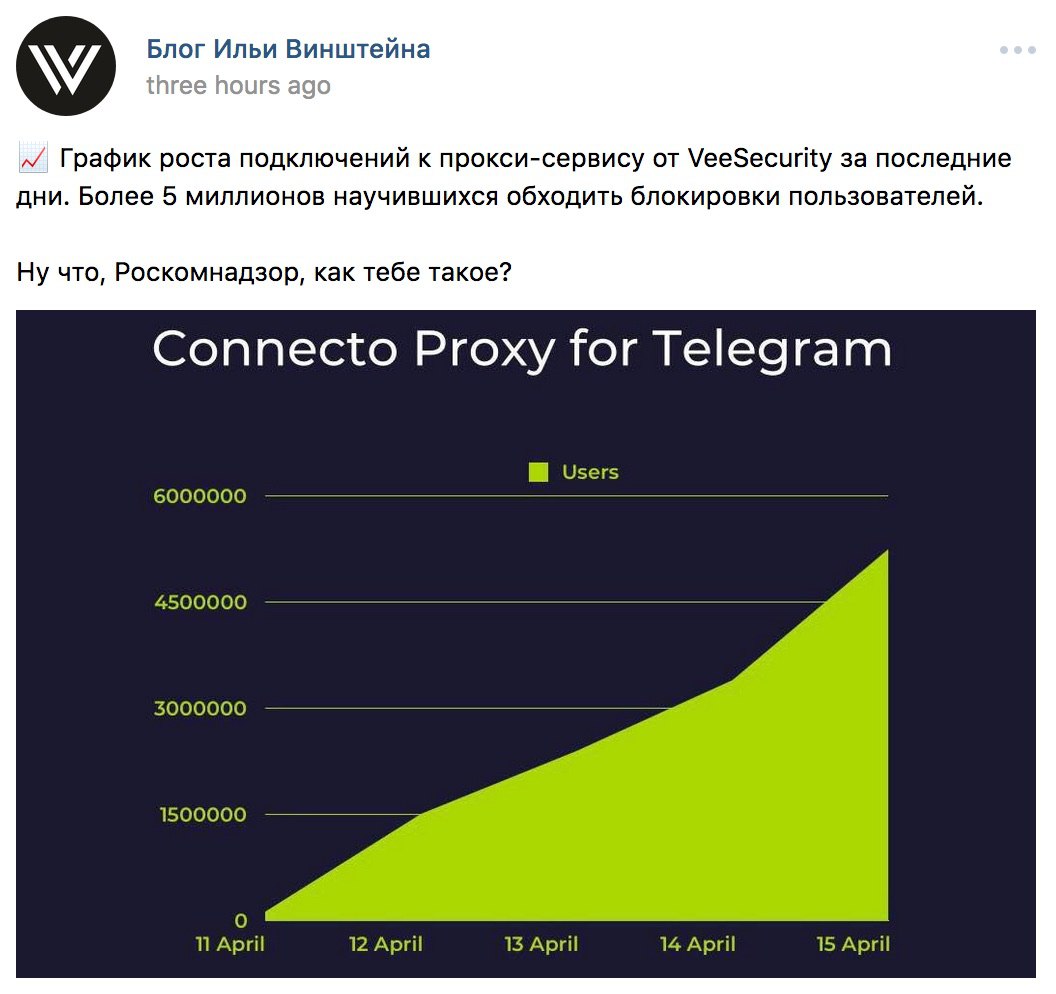 Несколько недель назад @VeeSecurity запустили публичный сервис Connecto Proxy для Telegram — простой и удобный способ получить доступ к любимому мессенджеру даже там, где он заблокирован органами государственной власти.