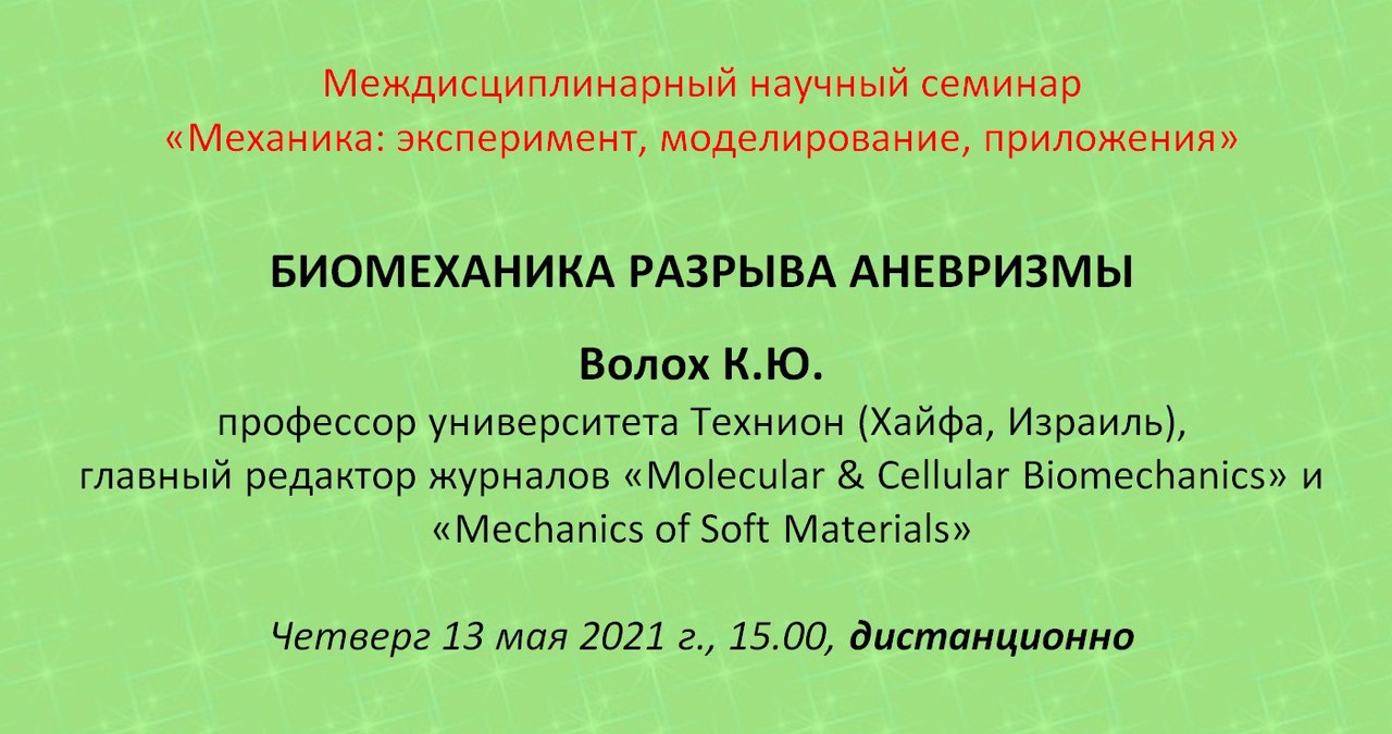 -= Междисциплинарный семинар «Механика: эксперимент, моделирование, приложения» =-