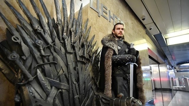установили в метро на станции «Деловой центр» Сфотографироваться на нём могут все пассажиры. Рядом с ним прогуливались аниматоры в образах Дейнерис Таргариен, Джона Сноу и Серсеи Ланнистер.