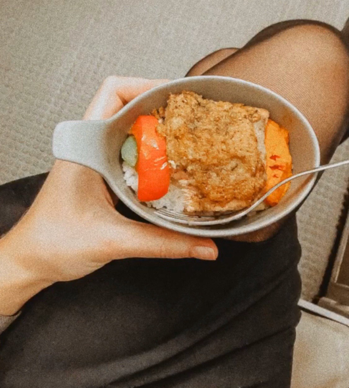 Девчонки делятся своими мыслями за бортовым обедом.