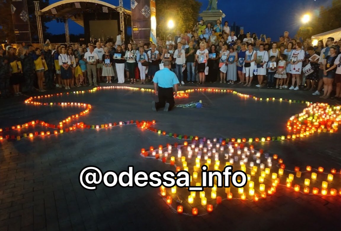 Несколько сотен человек 23 августа пришли под памятник Дюку в Одессе, чтобы почтить память погибших за независимость Украины.