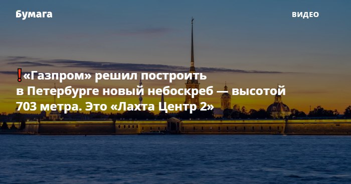 — «Газпром» решил построить в Петербурге новый небоскреб — высотой 703 метра. Это «Лахта Центр 2»: