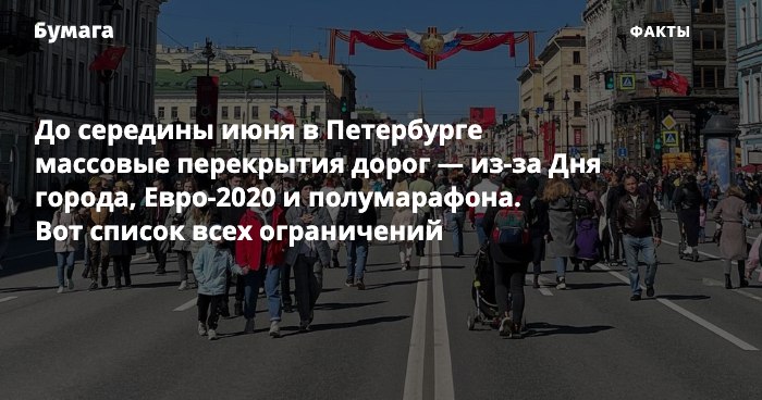 https://ppr.today/cSIeaHl— до середины июня в Петербурге массовые перекрытия дорог — из-за Дня города, Евро-2020 и полумарафона. Вот список всех ограничений: