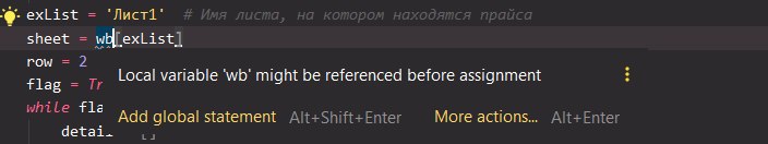 Ты делаешь try, в котором создаешь wb. Но в except ты не пробрасываешь исключение дальше, а просто печатаешь. В этом случае переменная wb создана не будет, а исполнение кода с вызовом wb продолжится.