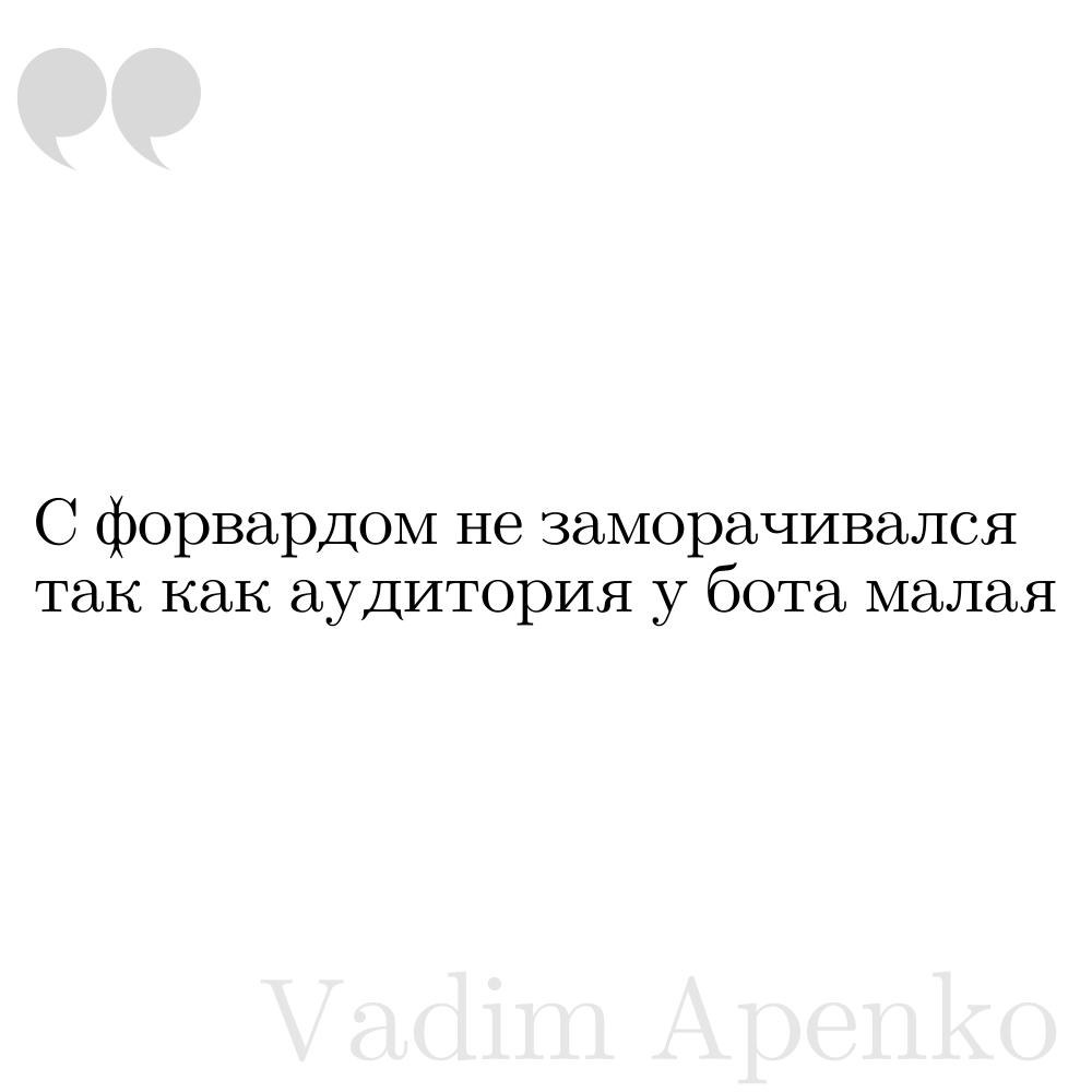 @k4m454k кстати, а как на счет того, чтобы квоте бот мог из форварда брать имя оригинального автора/канала и писать его, как подпись. И еще добавить сплит слов, чтоб автоматом разносилось на несколько строк, если строка длиннее n символов (найти n экспериментально можно в целом, чтоб понять сколько влезает)