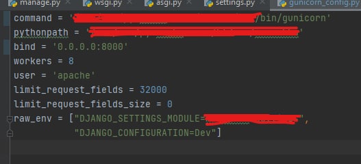 Всем день добрый, прошу помощи с развертыванием проекта Django + React через Docker-compose, где следует прописать запуск gunicorn в Dockerfile через CMD ["gunicorn", "--bind", ":8000", "--workers", "3", "mysite.wsgi:application"] или же правильней внутри docker-compose.yml через запуск скрипт в entrypoint: ? Еще переменные окружения конфигурации к gunicorn хочу подтянуть через файл .py на картинке. Но gunicorn берет базовую конфигурацию. Правильно ли так вызывать, если используют контейнеризацию? Спасибо заранее