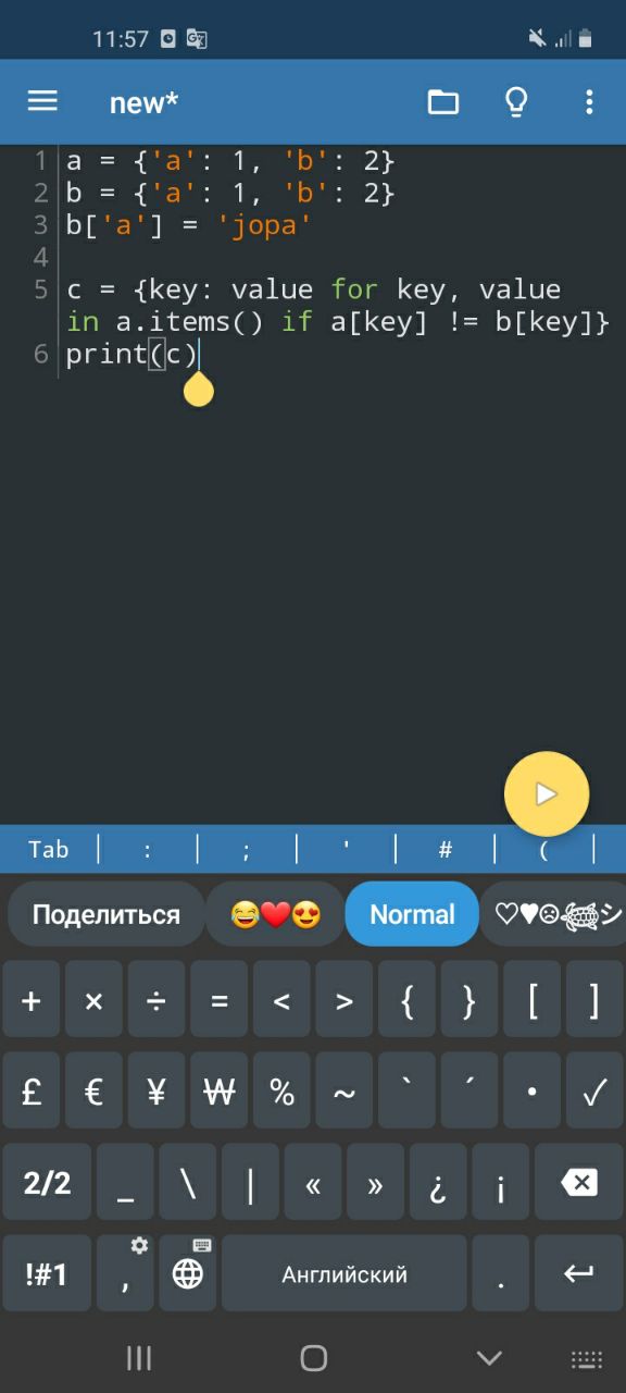 Мне нужно сформировать третий словарь, в котором будут храниться только те пары ключ: значение которые были изменены.