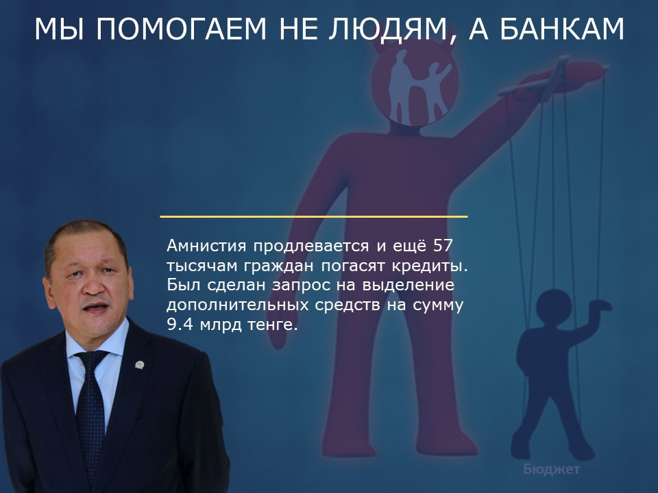 Вы являетесь членами Правления НБРК и открытыми политиками, которые прислушиваются к мнению аналитиков. Мы просим вас внимательнее присмотреться к действиям регулятора и попросить их проанализировать подобные акции банков. Если быть более конкретным, проанализировать всех заёмщиков, которым были выданы кредиты в рамках данной акции и изучить резонность выдачи. Для государства этот анализ как минимум бесплатный, а вам придаст уверенность и своевременное владение информацией.