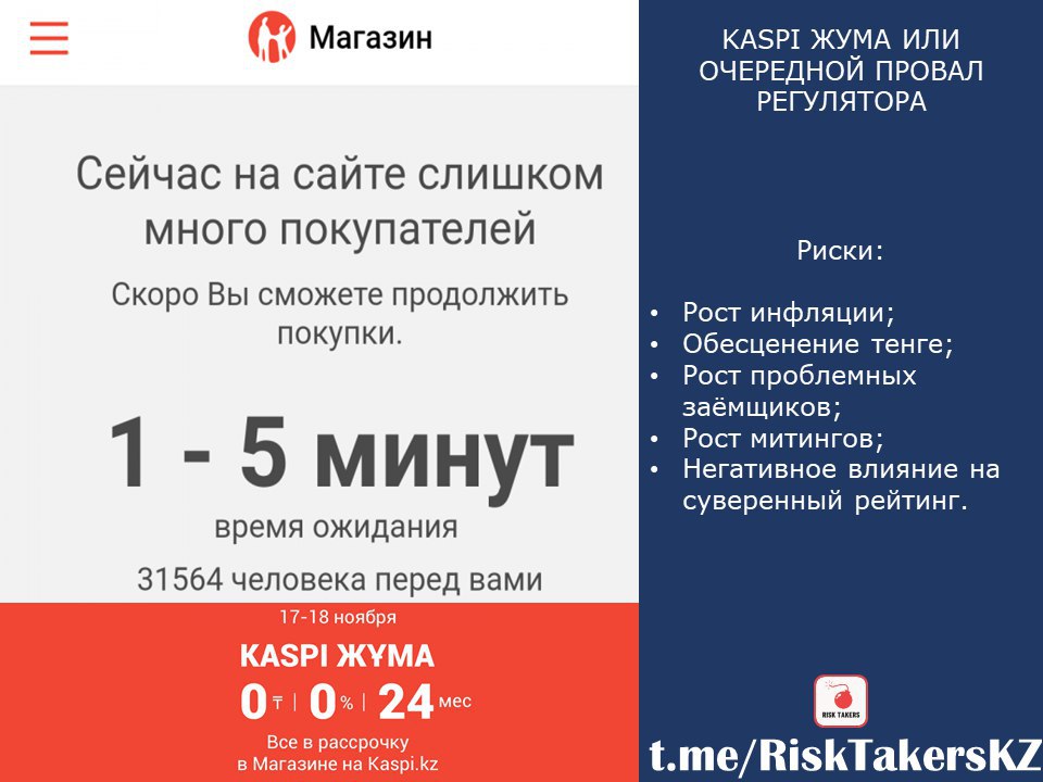 В первую очередь, стоит напомнить о мандате НБРК – стабильность цен. Подобные акции, которые разгоняют спрос, ускоряют рост инфляции, тем самым не давая снижать базовую ставку. В данном случае, люди покупают товары на сайте KASPI.KZ, большинство из которых импортные. То есть подобные акции негативно отражаются на торговом балансе, а именно на росте импорта. Также мы получаем негативное влияние на курс национальный валюты, который в последствии приведет к росту инфляции.