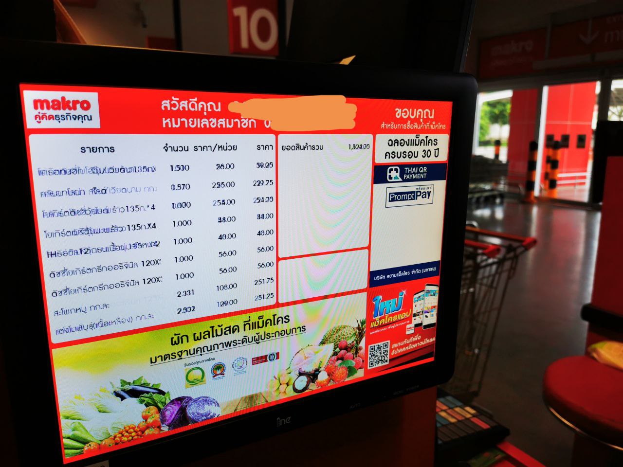 Остров Самуи, макро Ламай. Монитор с покупками, можно отслеживать и тут же QR кодом можно оплатить