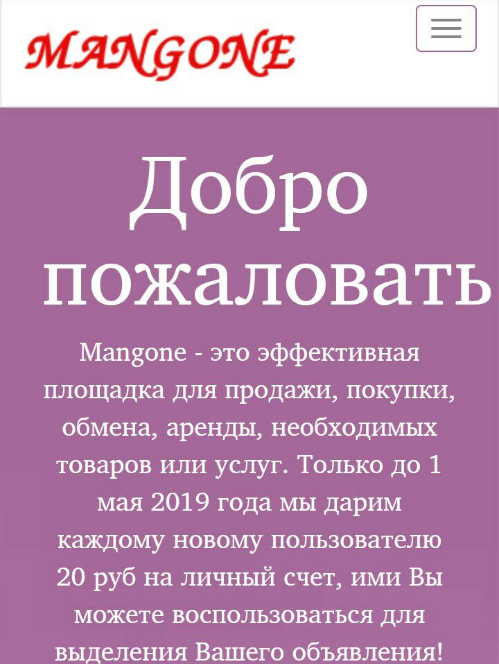 Площадка для продажи, покупки, обмена, аренды, необходимых товаров или услуг. В нащей группе и на сайте https://mangone.ru вы можете размещать свои объявления абсолютно бесплатно!!