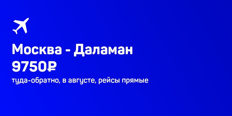 Москва - Турция (Даламан) за 9750₽ туда-обратно, в августе, рейсы прямые