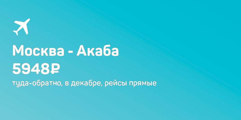 Завтра из Москвы в Акабу 5400₽ за прямой перелёт туда-обратно с багажом