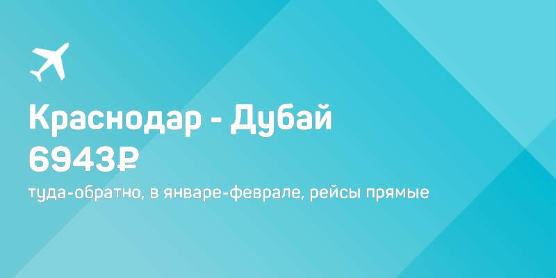 Краснодар - ОАЭ (Дубай) за 6943₽ туда-обратно, в январе-феврале, рейсы прямые