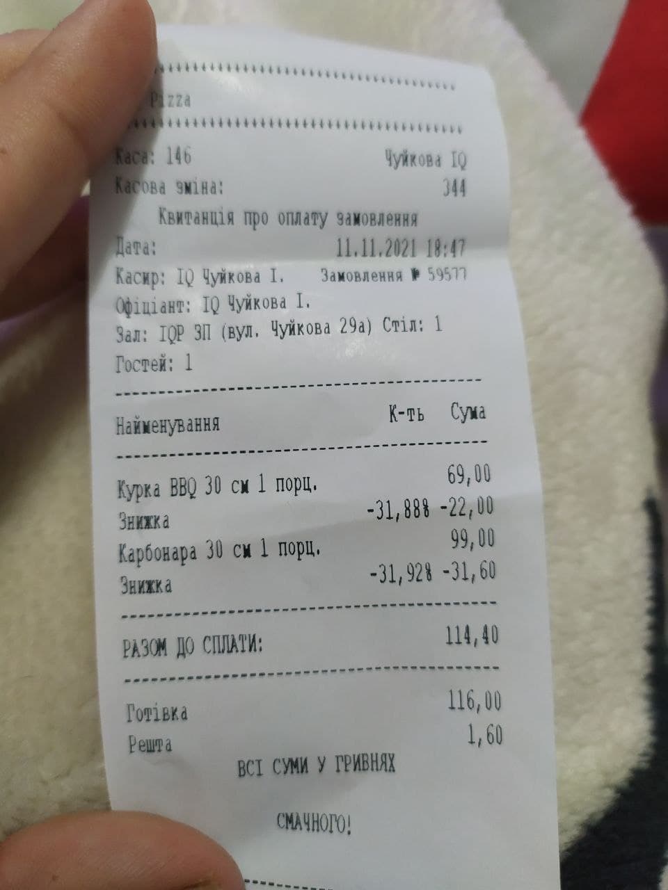 11.11 Отзыв будет о IQ Pizza на Чуйкова 29.